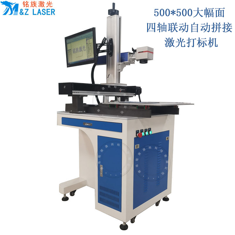 大幅面拼接激光打標機是市面上少有的一種工作方式(伺服電機控制),整個大幅面是靠XY平臺在打標的過程中邊打邊動來實現,完全可以做到無拼接縫隙,速度也比較快,對激光器需求的功率也不會加高,線條也比較精細。看起來是一種完美的大幅面打標的方式